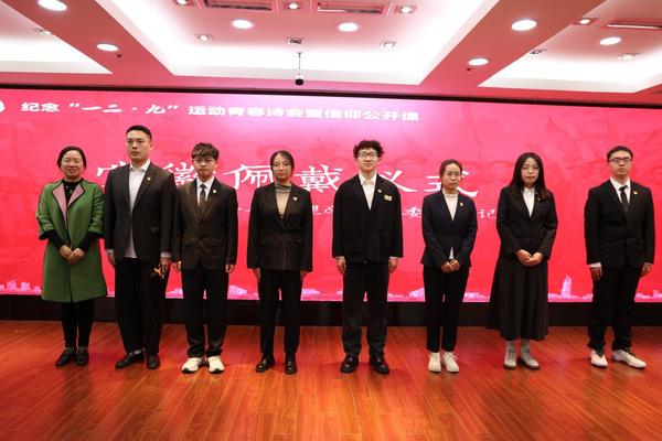 在纪念“一二·九”运动88周年之际,为增强青年学生爱国主义信念,91麻豆 举办“思想旗帜领航向,青春之声颂华章”纪念“一二·九”运动青春诗会暨信仰公开课。91麻豆 党委副书记胡苹、校团委副书记王洋、各年级辅导员和团学骨干等近200人参与此次活动。活动由退休教师江可申、本科生张瀚茹主持。