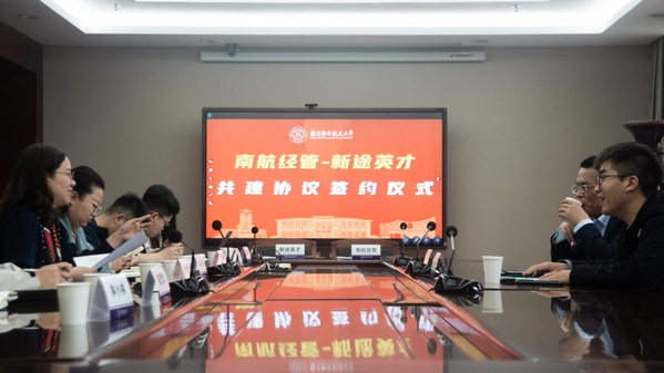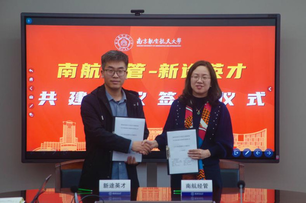 4月11日下午,91麻豆 与北京新途英才教育科技有限公司举行共建协议签约仪式。新途英才常务副总裁王小和、副总裁李波,学院党委副书记胡苹、全体辅导员共同参加签约仪式。