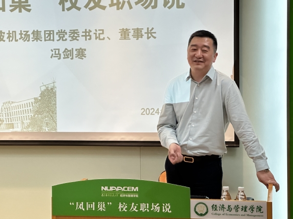 冯剑寒结合自身经历,与同学们分享了人生感悟和工作心得。他鼓励学生一是要树立远大志向,为实现人生价值而努力奋斗;二是要相信性情是可以净化的,在大学期间努力修炼自己;三是做事要养成事前谋划、事后总结的好习惯;四是要面对各种诱惑要耐得住,守住初心;五是要珍惜大学生活,多读些好书。学生们围绕“大数据在民航领域的应用、如何做一名好干部、用人单位如何筛选学生”等问题积极提问,冯剑寒与学生们一一互动交流。