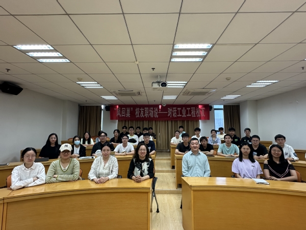 冯剑寒与学院何沙玮、黄周春副教授短暂交流后,为学院带来 “‘凤回巢’校友职场说”主题讲座,三十余名工业工程专业学生参加,讲座由辅导员陈思华主持。