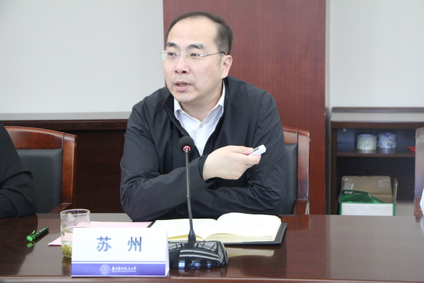 苏州对冯剑寒的到来表示热烈欢迎。他介绍了学院的发展历程、以及近年来在教学、科研、人才培养等方面取得的成就。他表示,学院的发展离不开校友的关心和支持,希望双方发挥各自优势,加强交流合作,拓展产学研发展路径,共同促进学院高质量发展。