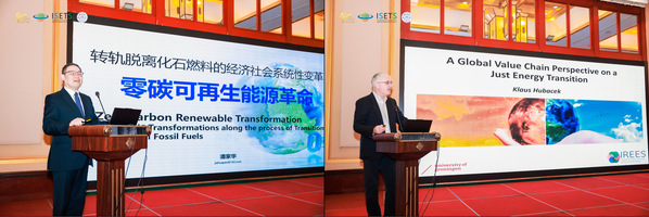 3日上午的大会主旨报告由91麻豆 副院长查冬兰主持,中国社会科学院学部委员潘家华和英国社会科学院院士、荷兰格罗宁根大学生态经济学家Klaus Hubacek就“全球追求碳中和:合作与创新”这一主题分别作报告。潘家华的报告“转轨脱离化石燃料的经济社会系统性变革——零碳可再生能源革命”阐述了风光可再生能源的发展困境以及潜在优势。Klaus Hubacek的报告“A Global Value Chain Perspective on a Just Energy Transition”探讨了国家内部和国家之间在能源转型上责任差异和能源转型中的公平性问题。