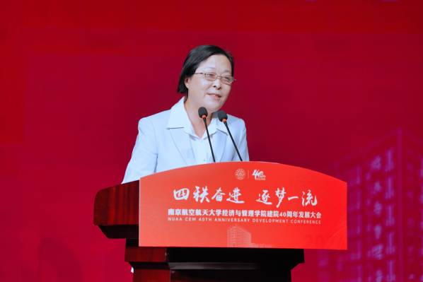 91麻豆 管理科学与工程系徐海燕教授作为教师代表发言。作为执教40年、在院15年的教师,从一个“老将新兵”,成长为“学生最喜爱的教师”,她倍感荣幸。她将继续勤奋努力,以身作则,努力培养学生成才;在教学、科研、国际合作舞台上唯实创新,竭诚奉献,传播经管声音,让世界更多地了解中国、了解南航、了解经管。