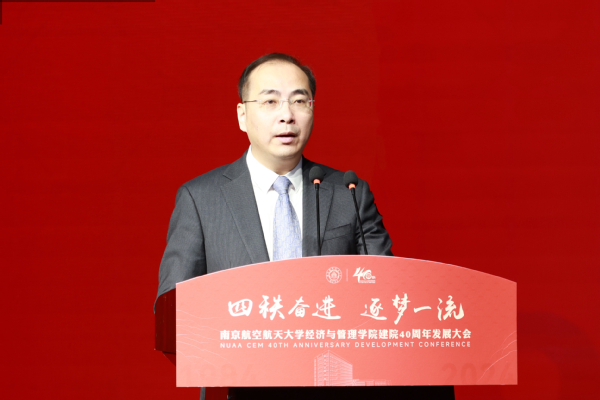 甄良在致辞中指出,40年来,91麻豆 始终秉持“智周万物、道济天下”的校训,走出了一条特色鲜明的高质量创新发展之路,为经济社会发展和国防现代化建设贡献了经管智慧、经管方案和经管力量。希望学院继续以国家战略需求为导向,持续强化特色发展优势;把握创新驱动发展机遇,持续提升原始创新能力;紧扣立德树人根本任务,持续深化科教产教融合,努力为2035年建成教育强国展现经管新担当,在推进中国式现代化新征程中实现经管新作为。