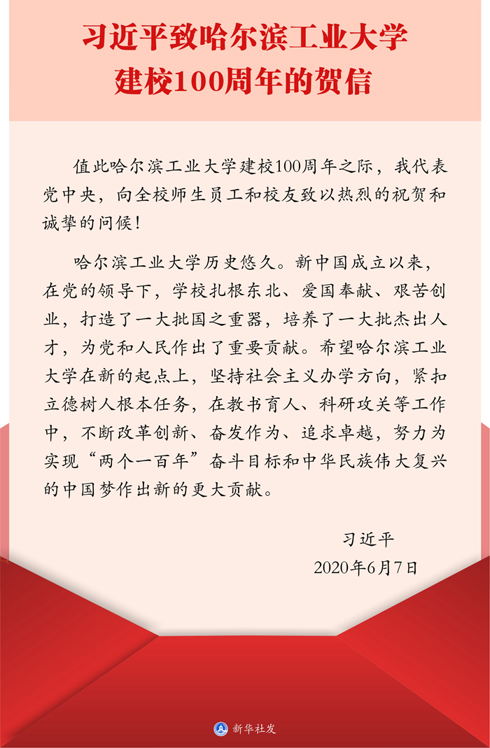 习近平总书记致哈尔滨工业大学建校100周年的贺信