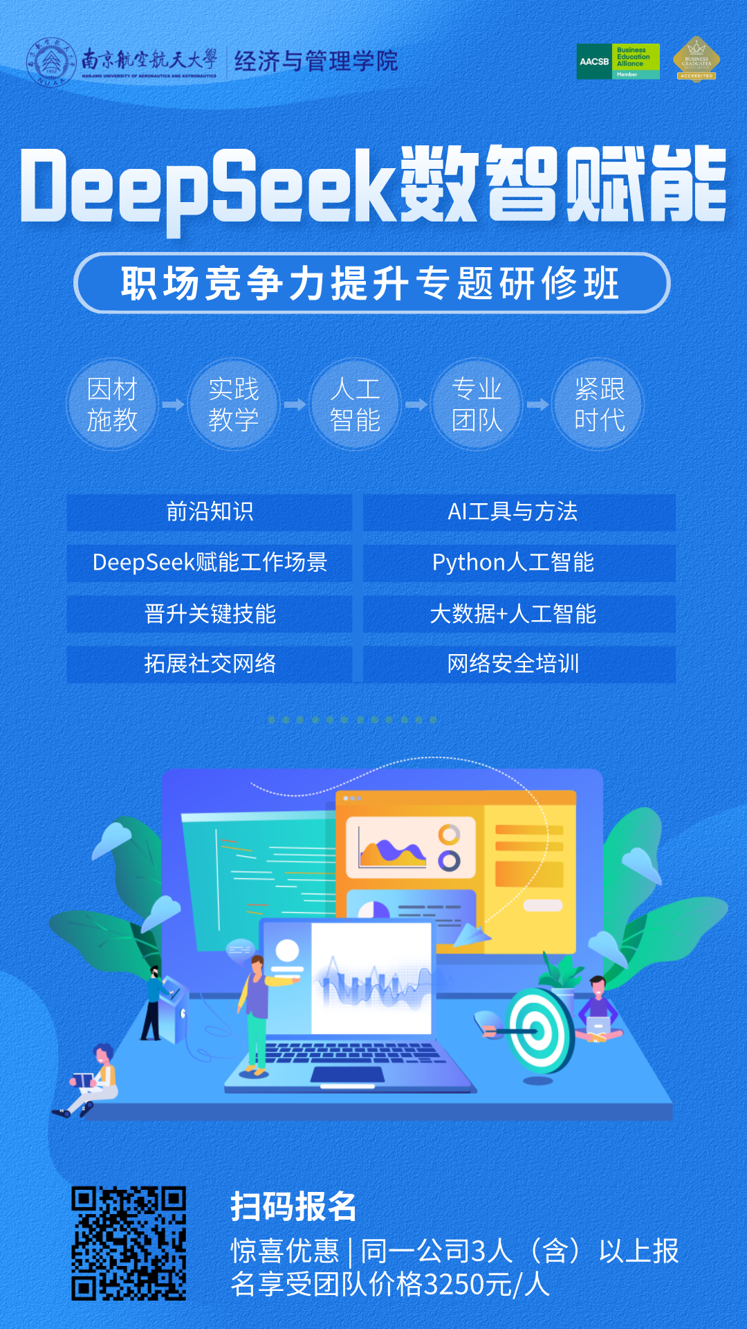 在当今数字化时代,人工智能(AI)技术正以前所未有的速度渗透到企业运营的各个层面。其中,AI DeepSeek 作为新一代人工智能工具,正在重塑企业管理方式,推动领导力的深度变革。企业管理者们正面临着空前的挑战和机遇,如何提升工作效率和优化决策过程?如何重塑管理结构和适应技术变革?如何洞察用户需求和升级产品及服务?唯有通过不断学习AI新技术,并正确使用AI工具应对这一时代的变革。经济与管理学院将组织开展DeepSeek赋能职场竞争力提升专题研修班,旨在帮助个人实现生产力和创造力倍增,帮助企业通过工具革命和员工培训,打开全新的增长空间。