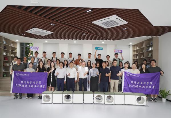 5月14日下午,经济与管理学院“AI赋能成长精英训练营暨2026届职业训练营”开班仪式在A0306报告厅举行。本次训练营旨在通过AI技术与职业能力培养的结合,为学生提供精准赋能。南京新手村科技有限公司总经理石新洪、副总经理刘权震、培训教师顾思俞,南京航空航天大学学生处副处长杨杰,经济与管理学院党委副书记胡苹,经济与管理学院工商系教师丰超、刘文龙,各年级辅导员、参训学生代表等共同参与本次开班仪式。活动由2025届毕业班辅导员陈思华主持。