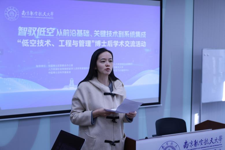 分论坛由学院黄周春老师主持,由学院查冬兰副院长致欢迎辞。查冬兰首先代表学院对各位专家学者的到来表示热烈欢迎,介绍了学院在低空经济领域的研究基础和特色优势,并期望通过此次论坛搭建起博士后学术交流的高端平台,促进低空技术、工程与管理领域的协同创新与深度融合。