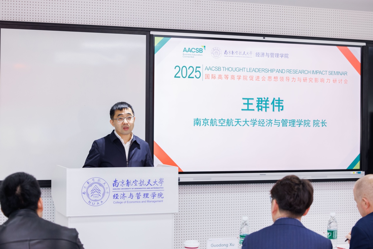 2025年12月3日,由国际高等商学院促进会(以下简称“AACSB”)主办、南京航空航天大学经济与管理学院承办的“思想领导力与研究影响力”标准研讨会成功举办。此次研讨会由AACSB执行副总裁、首席成员官、亚太区及美洲区执行董事Geoff Perry博士担任主讲嘉宾,汇聚了来自国内多所知名高校的院领导、专任教师和行政老师,共同探讨AACSB认证体系中的核心要素——思想领导力与研究影响力。