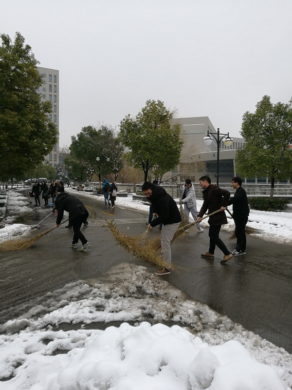 2018年南京的第一场大雪不期而至,大量的降雪造成校内各处积雪严重,影响师生的正常出行。1月5日上午,经济与管理学院40多名党员同学自发组成扫雪小分队,投入扫雪行动。大家拿着铁锹、大扫把纷纷出动,热火朝天地清扫着经济与管理学院的包干区——从四食堂至经管学院门口的路段,保障师生校内的安全出行。