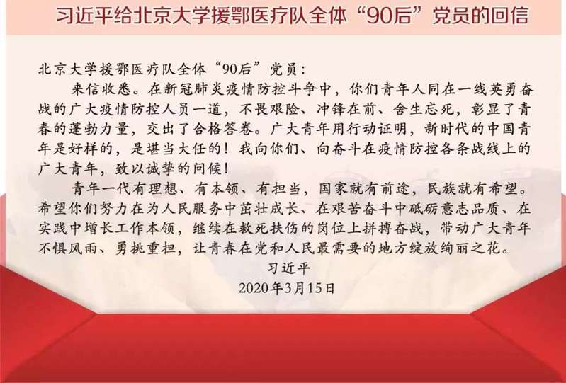 时文丨习近平给北京大学援鄂医疗队全体“90后”党员的回信