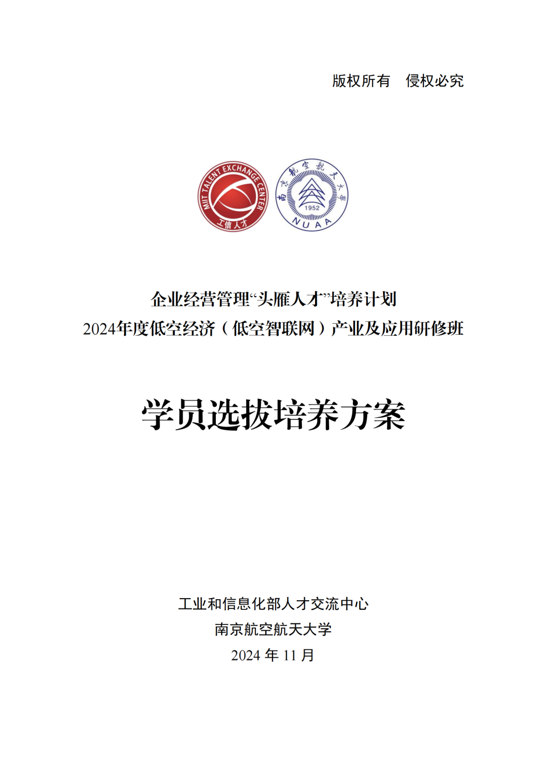 招生简章 | 企业经营管理“头雁人才”培养计划 2024年度低空经济(低空智联网)产业及应用研修班学员选拔培养方案