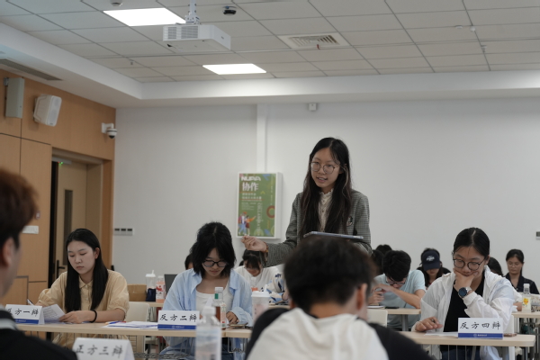 为深化专业教育与思政教育融合,落实立德树人根本任务,筑牢青年思想根基,锤炼学生逻辑思维与公共表达能力,6月12日下午,学院在天目湖校区明慧楼C110教室举办“经英领航”——经济与管理学院2024级本科生辩论赛,在《思想道德与法治》课程中开展一次别开生面的翻转课堂。学院党委副书记、《思想道德与法治》授课教师胡苹出席本次活动,2024级本科生辅导员胡心雨、王江鑫以及金融学专业和大数据管理与应用专业学生共同参与其中,现场气氛热烈,思辨火花迸发。