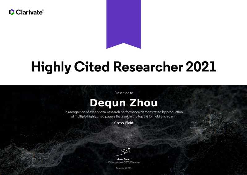 According to the list of “Highly Cited Researchers 2021” released by Clarivate Analytics on November 16, Prof. Dequn ZHOU from College of Economics and Management (CEM), Nanjing University of Aeronautics and Astronautics (NUAA) were selected into the category of Cross-Field.